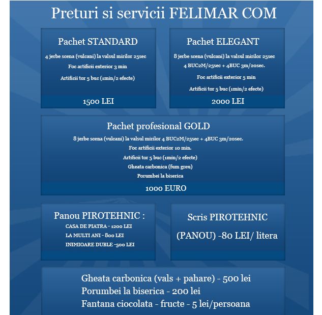 FELIMAR COM S.R.L. - FOCURI DE ARTIFICII PROFESIONALE - EFECTE SPECIALE - SPECTACOLE PIROTEHNICE |