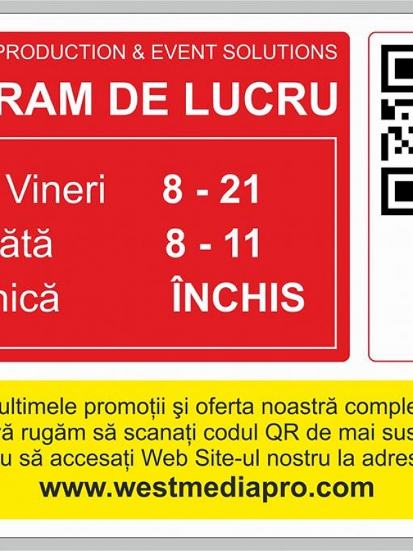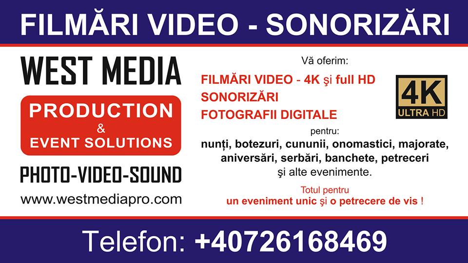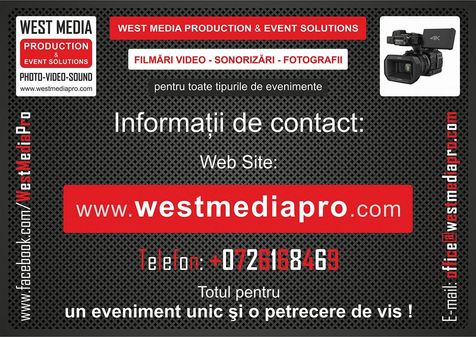 West Media Production & Event Solutions, este o companie din România, înfiinţată în anul 2014, şi care are ca obiecte principale de activitate, prestarea de servicii profesionale în domeniile Foto-Video-Sonorizări pentru evenimente.